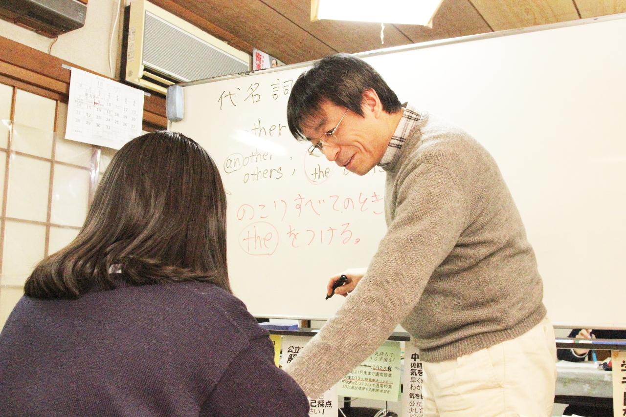 - 塾長以外の講師でも皆 熟練した黒板授業ができます。新人講師でも質の高い授業...多くのの授業練習で、生徒に新米だとわからないくらい! 高校生にも教えられる講師だから、小中学生にも高い対応力,柔軟性を発揮。
